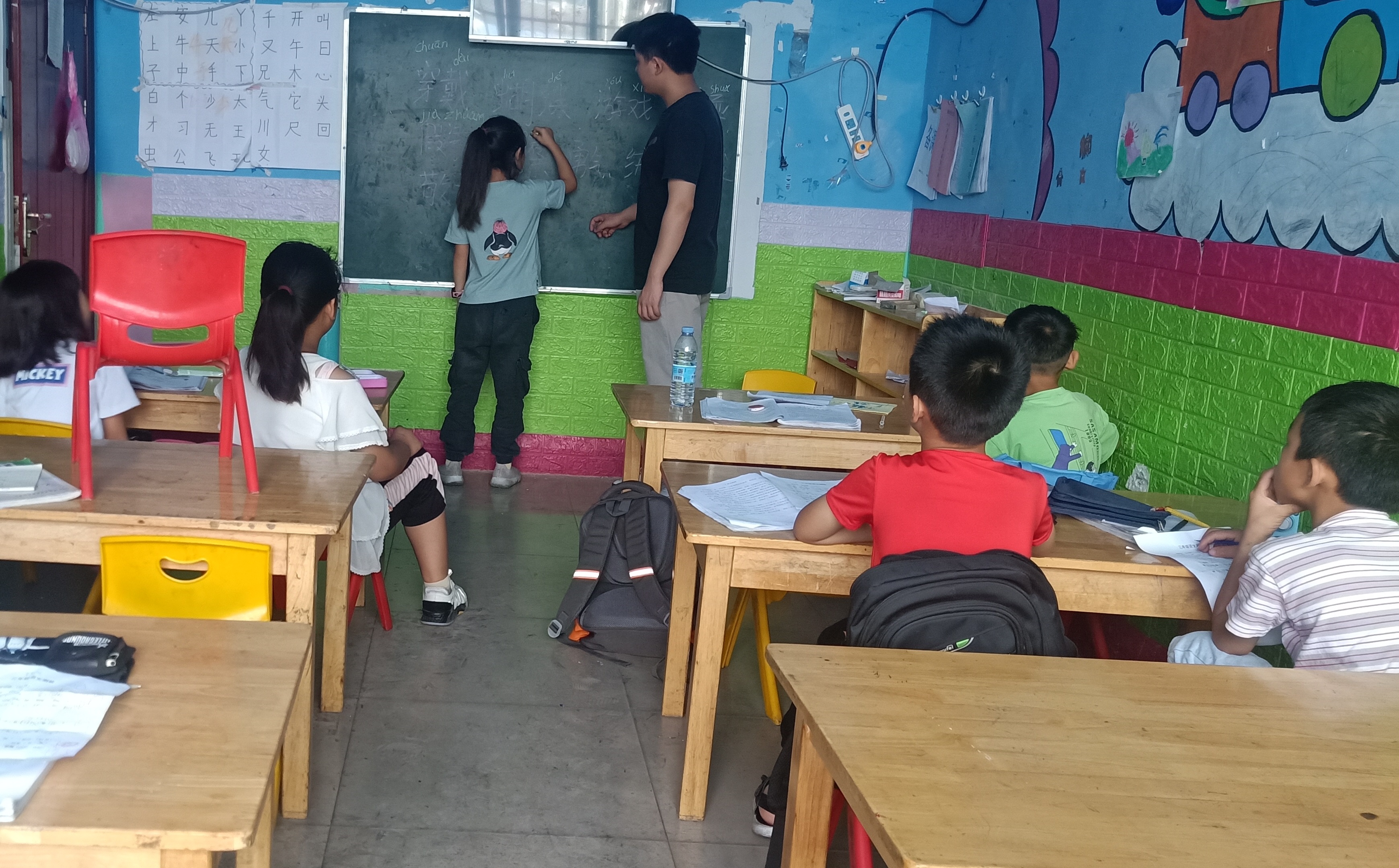 队员们每天进行教室消毒以及体温监测,保证孩子们的身体健康。而后通过调查,发现了孩子们经过数月的漫长假期,导致学习基础进一步下降,而有些线上课程教学的效果并不理想。面对性格不同、学力不同的孩子,队员们面临的是前所未有的挑战。队员们课前认真备课,充分利用网络资源;课上进行趣味教学,吸引孩子们的注意力;在课外和他们聊天,更细致的了解他们,深入到他们的圈子里,与他们做游戏,做朋友,提高他们的学习兴趣。