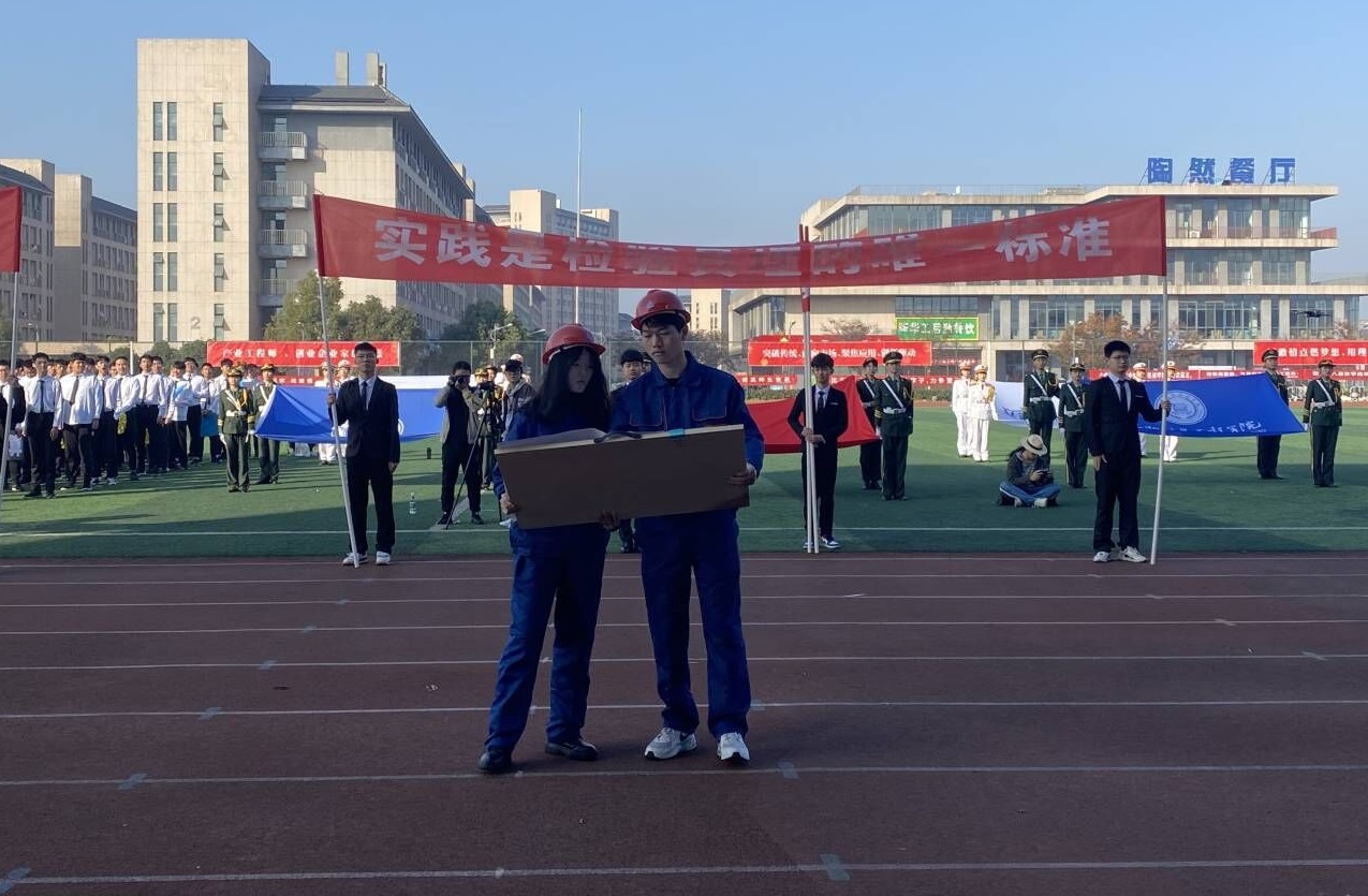 方阵表演分三幕,分别展示建国初期、改革开放时期、现代化建设新时期三个不同阶段的社会主义工业化发展历程。“没有强大的制造业,就没有国家和民族的强盛”,方阵第一幕弘扬铁人王进喜的“为国分忧,为民族争气”的爱国主义精神和工程师创新实干的态度。“科学技术是第一生产力”,方阵第二幕展示改革开放初期产业工程师们励精图治推动国家工业化发展,绘出一幅幅“春天的故事”。“时代呼唤大国工匠,使命引领智造未来”,方阵第三幕体现我们的产业工程师在新时代取得的丰硕成果,他们肩扛民族复兴大任,为智能高端制造的发展贡献力量。同学们高喊着口号,立志做一名敢闯敢拼、技术硬、气质优的产业工程师。