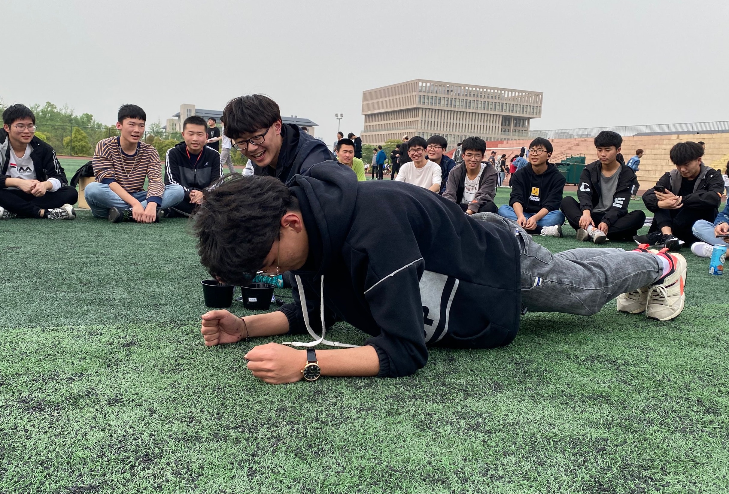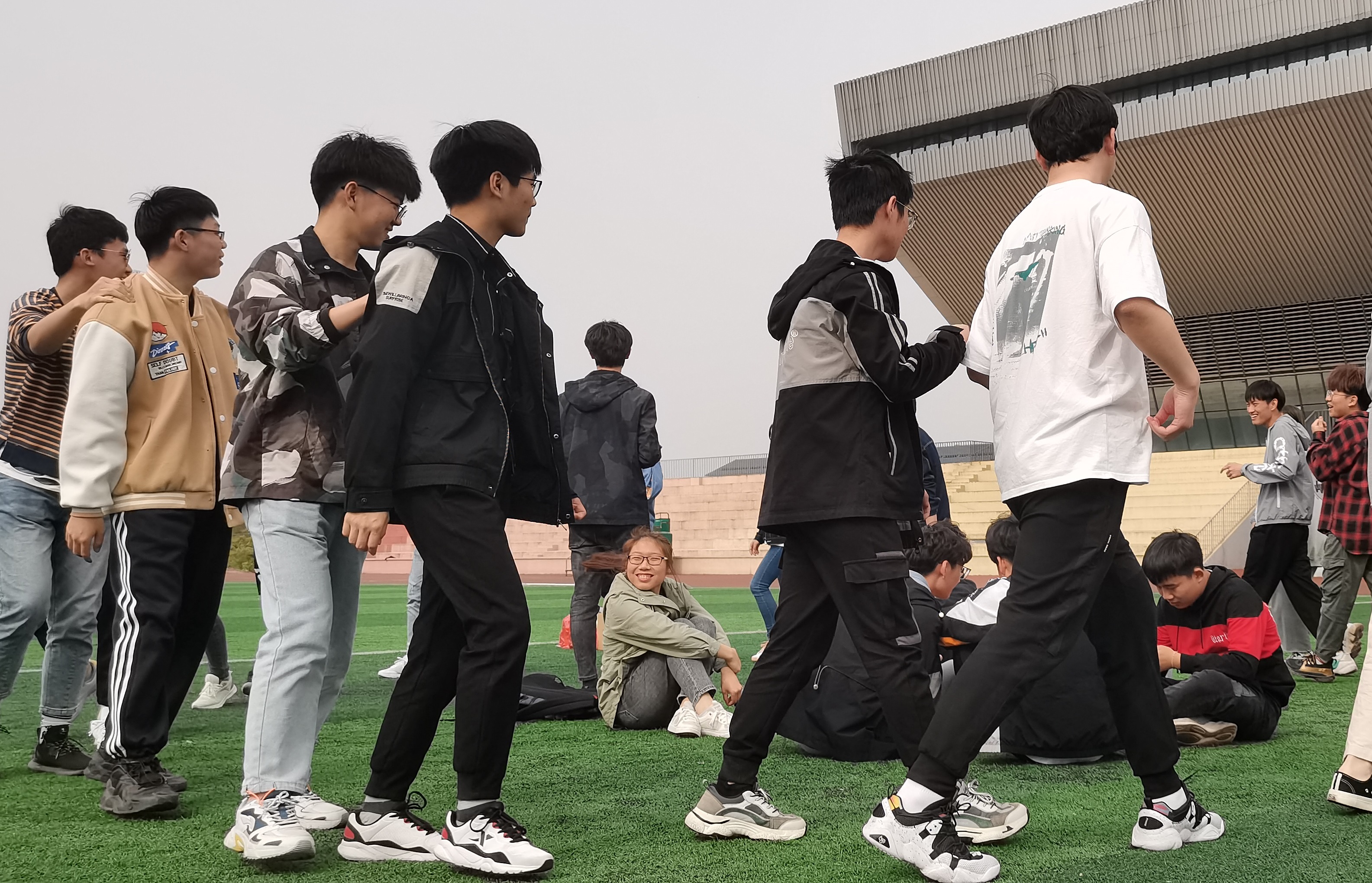 活动包含欢快的互动游戏与温情的心灵交流两个环节。下午三点,同学们在操场集合,首先进行“趣味快跑”游戏,游戏分为五个部分:五角一块、言行不一、你画我猜、踩气球、丢手绢。游戏结束后,同学们围坐一起,分享自己经历的人生趣事,交流自己的心得感悟,同学们的面颊上洋溢着灿烂的笑容。