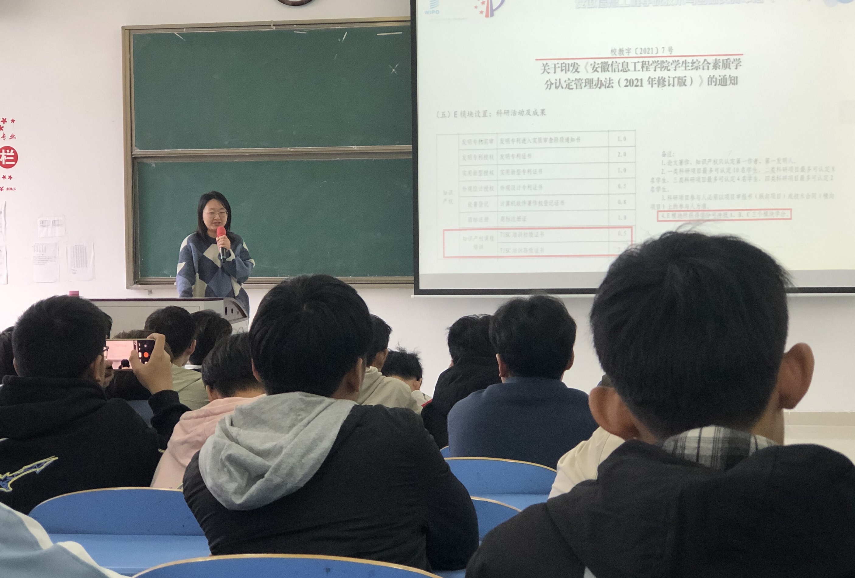 两位培训师从“古怪又精彩的专利”“怎么才能申请有创意的专利”“申请前要做什么”“申请时间和申请类型选择”“申请之后怎么查询状态”和“安徽信息工程学院专利递交流程”等六个方面进行讲解。培训师通过“人脸考勤”这一专利具体介绍了如何通过智慧芽和incopat去搜索专利是否被申请以及该怎么输入关键字。