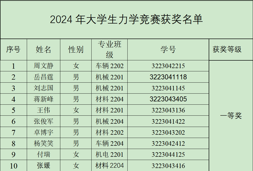 关于2024年安徽省大学生力学竞赛校内选拔赛获奖结果的通知